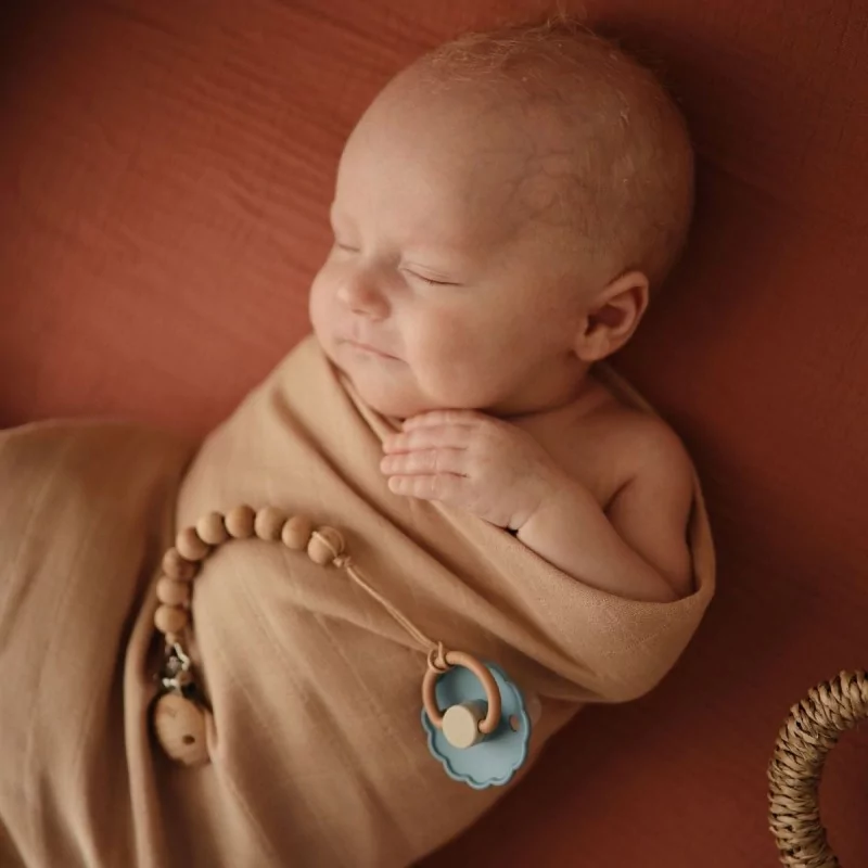 La sucette FRIGG Daisy, pleine de charme, est disponible en monochrome et en couleurs mélangées.