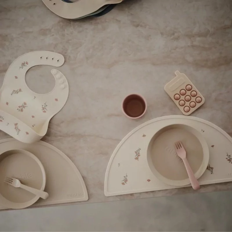 Un bavoir en silicone permet de garder votre petit bout de chou et les alentours propres :