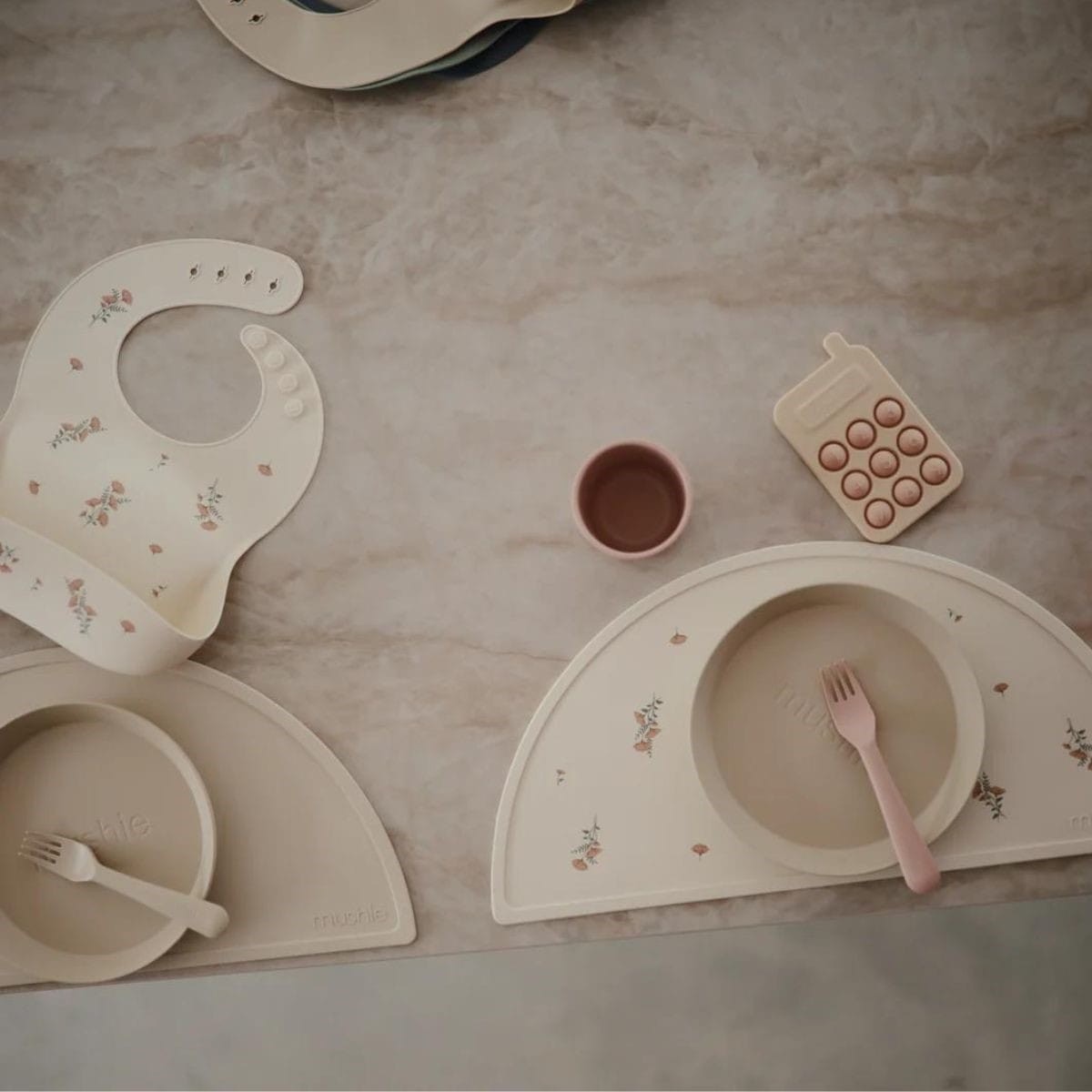 La collection de bavoirs en silicone de Mushie est amusante, intemporelle et colorée, dans des designs variés.