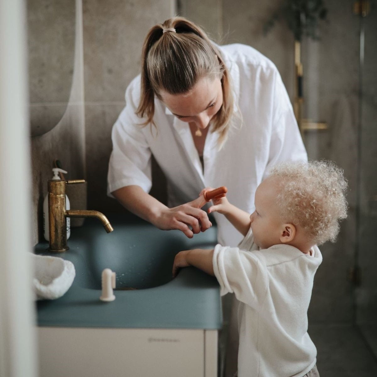 Éliminez les bactéries des gencives de votre bébé avec la brosse à dents à doigts de Mushie !