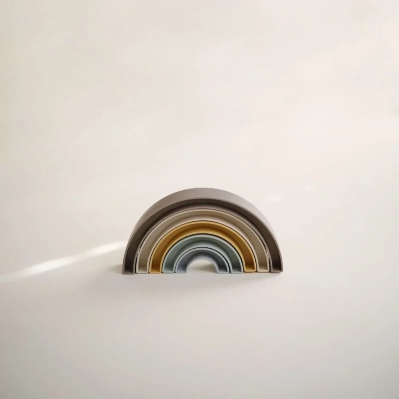 Ce jeu d'empilage arc-en-ciel, inspiré de l'appartement arc-en-ciel d'Aarhus, au Danemark, fait partie de notre collection hygge danoise.