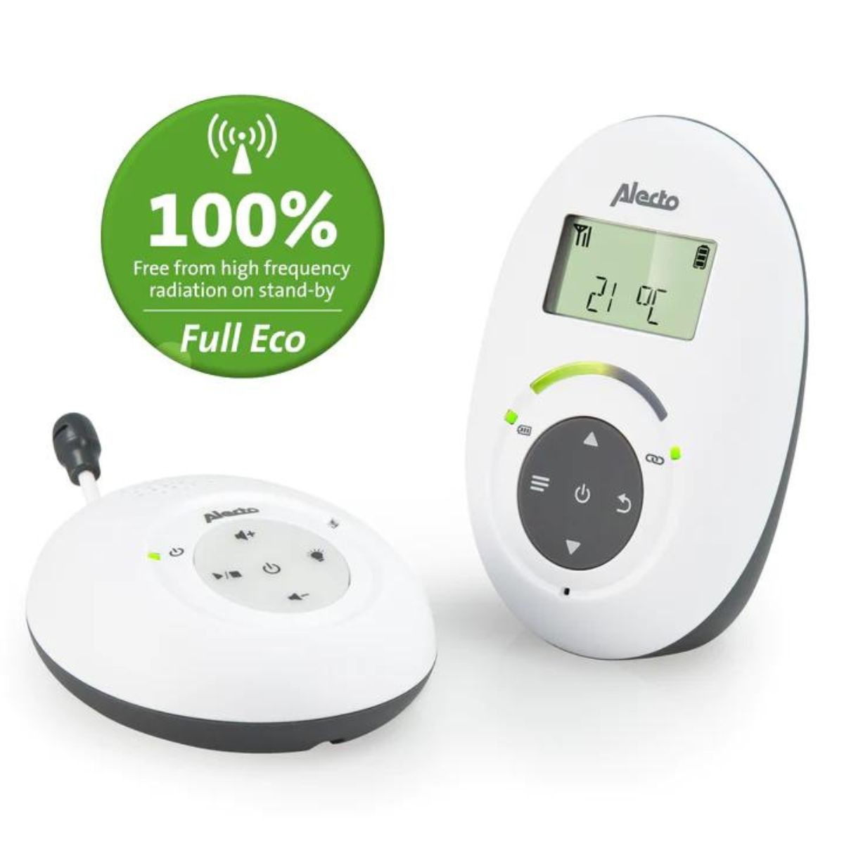 De Alecto Baby DBX-125 Full Eco DECT babyfoon. Met deze full Eco DECT hoor je precies welke geluiden jouw kleintje maakt, dankzij de kraakheldere verbinding. De full Eco DECT babyfoon heeft allerlei handige specificaties. Om met Full Eco te beginnen: dat houdt in dat je de energiebesparende modus kunt kiezen. Voor een langere batterijduur en verminderde straling. De DECT geluidskwaliteit staat voor: