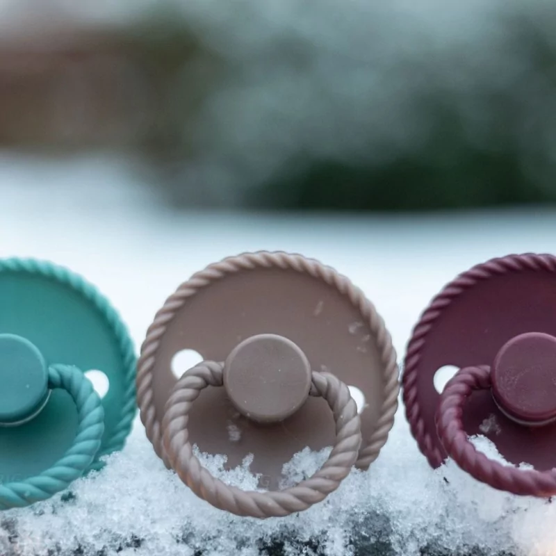 De FRIGG Rope fopspeen doet denken aan avonturen met krachten, hoogtes en dieptes. De inspiratie van een touw is duidelijk te zien in het ontwerp van de fopspeen, waarbij een dun touw het schild omringt en een dikker touw wordt gebruikt als handvat. De FRIGG Rope is geschikt voor zowel jongens als meisjes die van grootse avonturen houden...