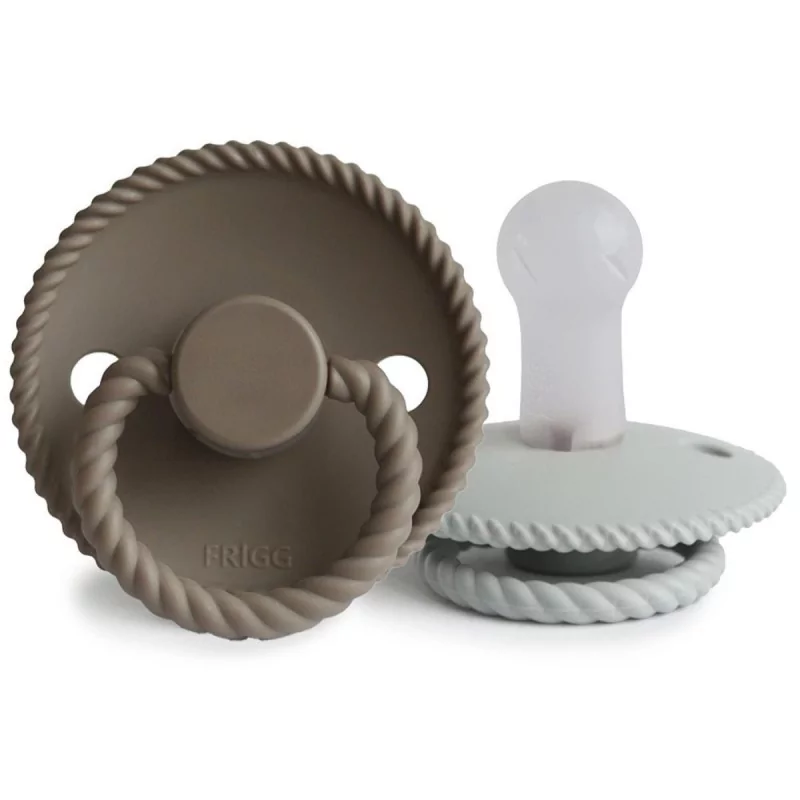 De FRIGG Rope siliconen fopspenen met SilkySoft™ speen en een innovatief Click-lock systeem is zorgvuldig ontworpen voor het comfort van je baby en heeft een verstrengeld touw dat het schild van de fopspeen omringt.