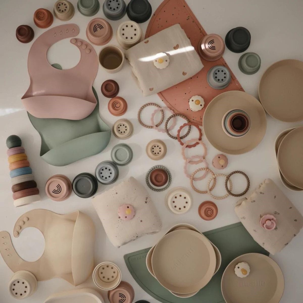 De collectie siliconen slabbetjes van Mushie zijn leuk, tijdloos en kleurrijk in verschillende designs.