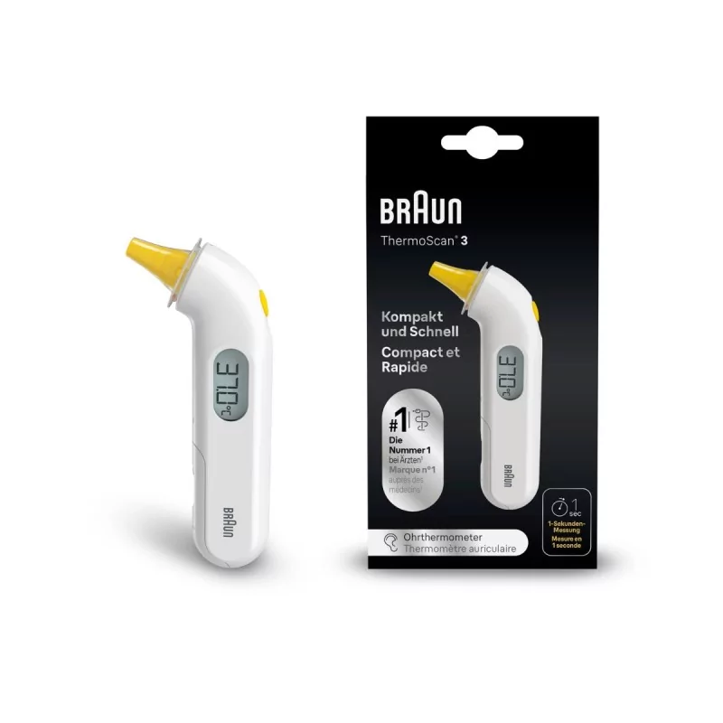 Met zijn compacte ontwerp is de Braun ThermoScan® 3 IRT 3030 gebruiksvriendelijk, zacht en snel. Het duurt slechts 1 seconde om de meting uit te voeren en de audiokoortsindicator helpt bij het interpreteren van de temperatuurmeting.