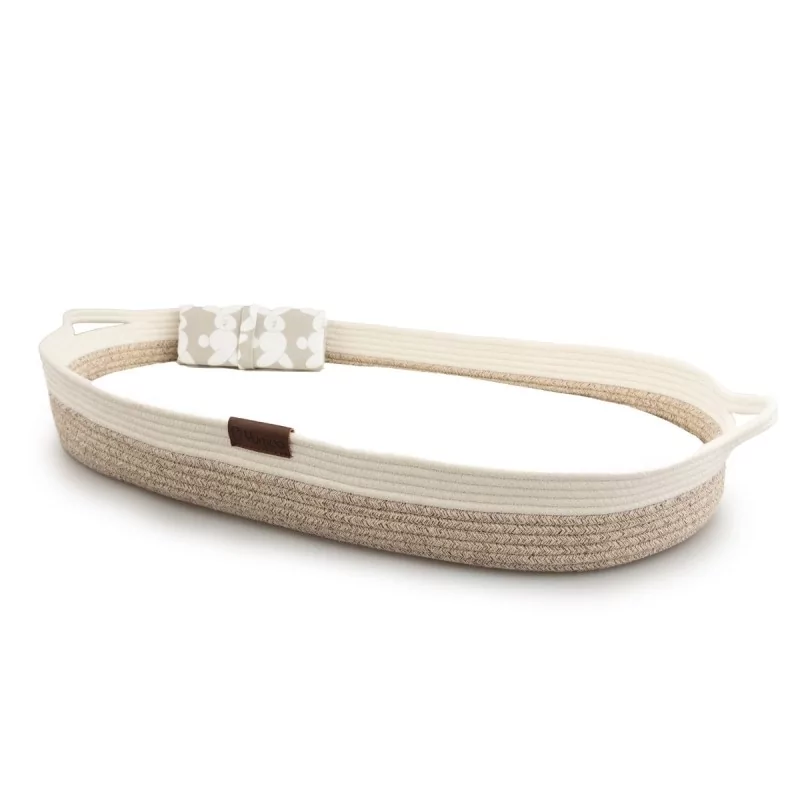 De Changing Basket is zacht, flexibel en duurzaam. Gemaakt van 60% katoen, 30% polypropyleen en 10% polyester. En juist deze combinatie zorgt ervoor dat de mand zowel zacht als stevig aanvoelt en langer meegaat.